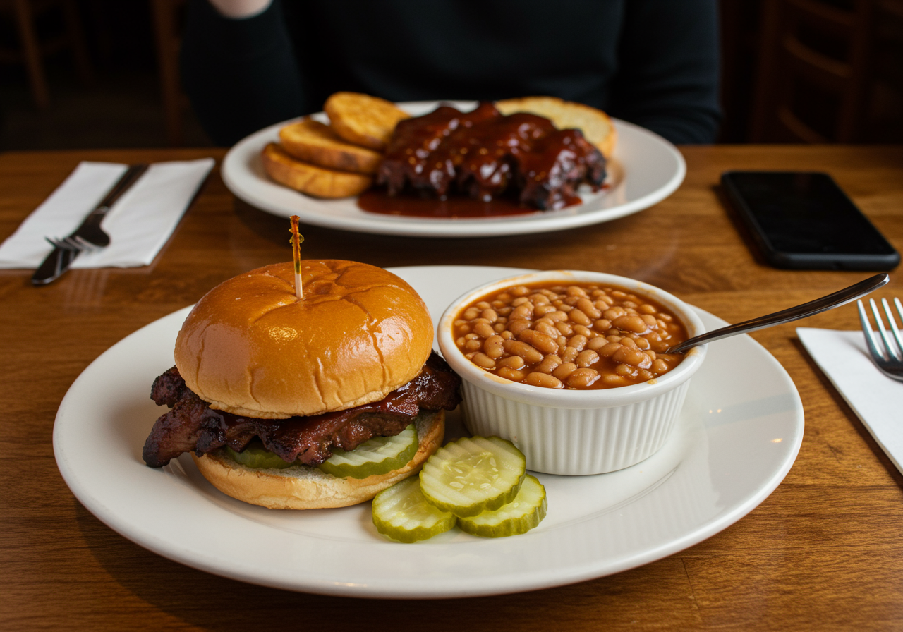 Let’s start with the ambiance, which they get pretty much right. It’s not too nice and clean (a good thing for a BBQ joint), and they have live blues most nights (a tried-and-true BBQ convention). It has the feel of a place where people have come through the doors with all kinds of stories to tell, good and bad.